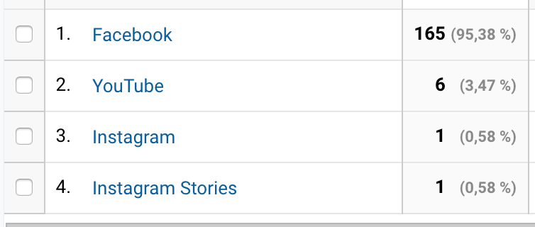 Na výše uvedených screenshotech z Google Analytics vidíš, jak si na tom stojím s čísly návštěvnosti (z jakých zdrojů a podíl návštěvnosti pro jednotlivé soc. sítě). [Zpět na tabulku tipů]