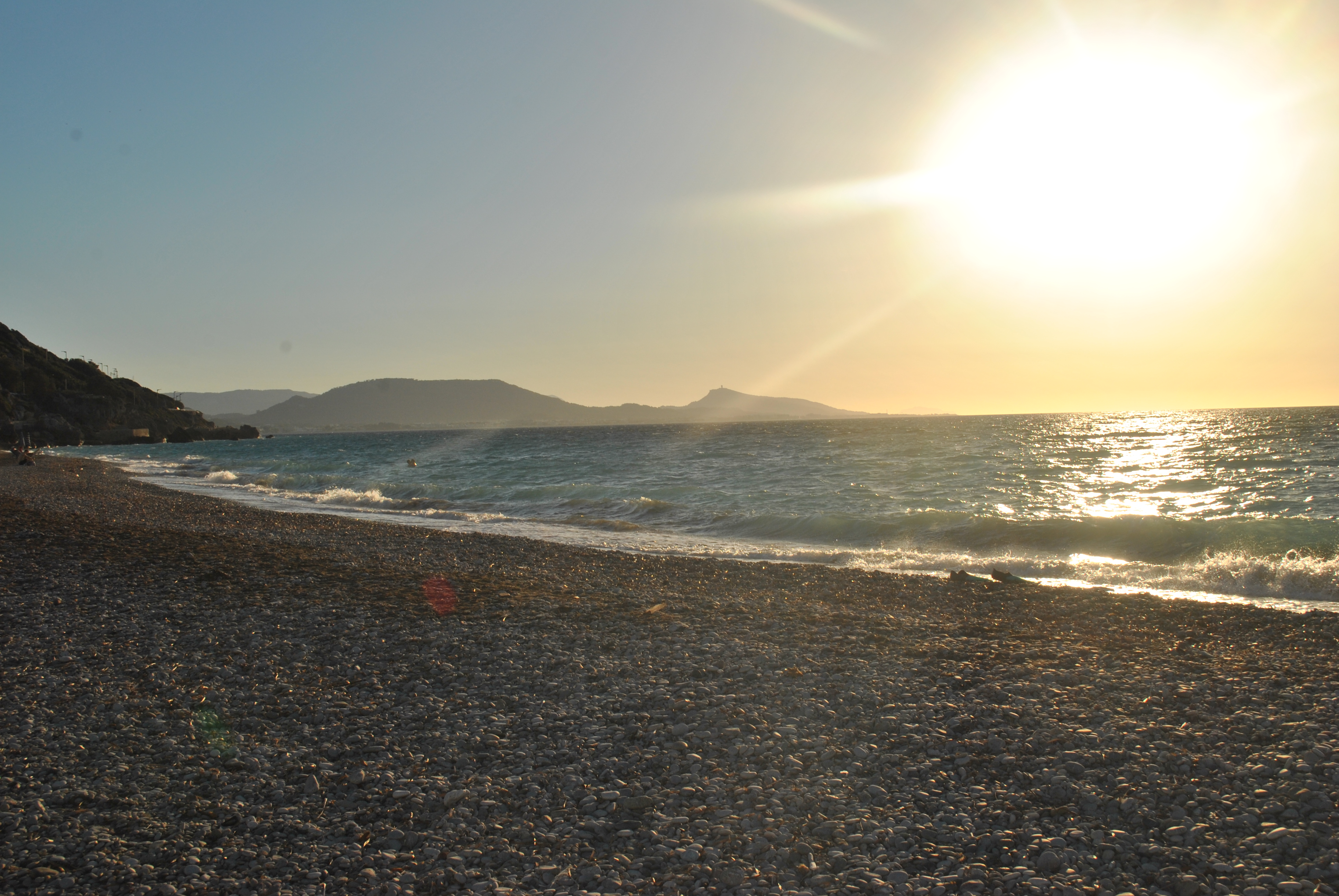Demi má poslední volno a po předchozí celodenní službě sbírá zbytky sil, aby mi ukázal další krásy ostrova Rhodos. Záměrně mě přiváží na Agathi pláž. Mám pocit, že se ocitám na Maltě – útesy, písečná pláž, sucho.