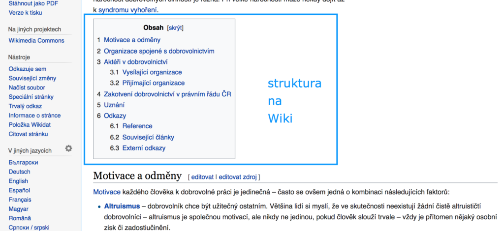 Další možností je podívat se na strukturu osnovy na Wikipedii. Otevři si stránku na Wiki, která se týká tvého tématu, a hned na začátku máš osnovu. Přesně tyto položky navádí, co lidi v daném tématu zajímá. Wiki má jistě SEO zmáknuté.