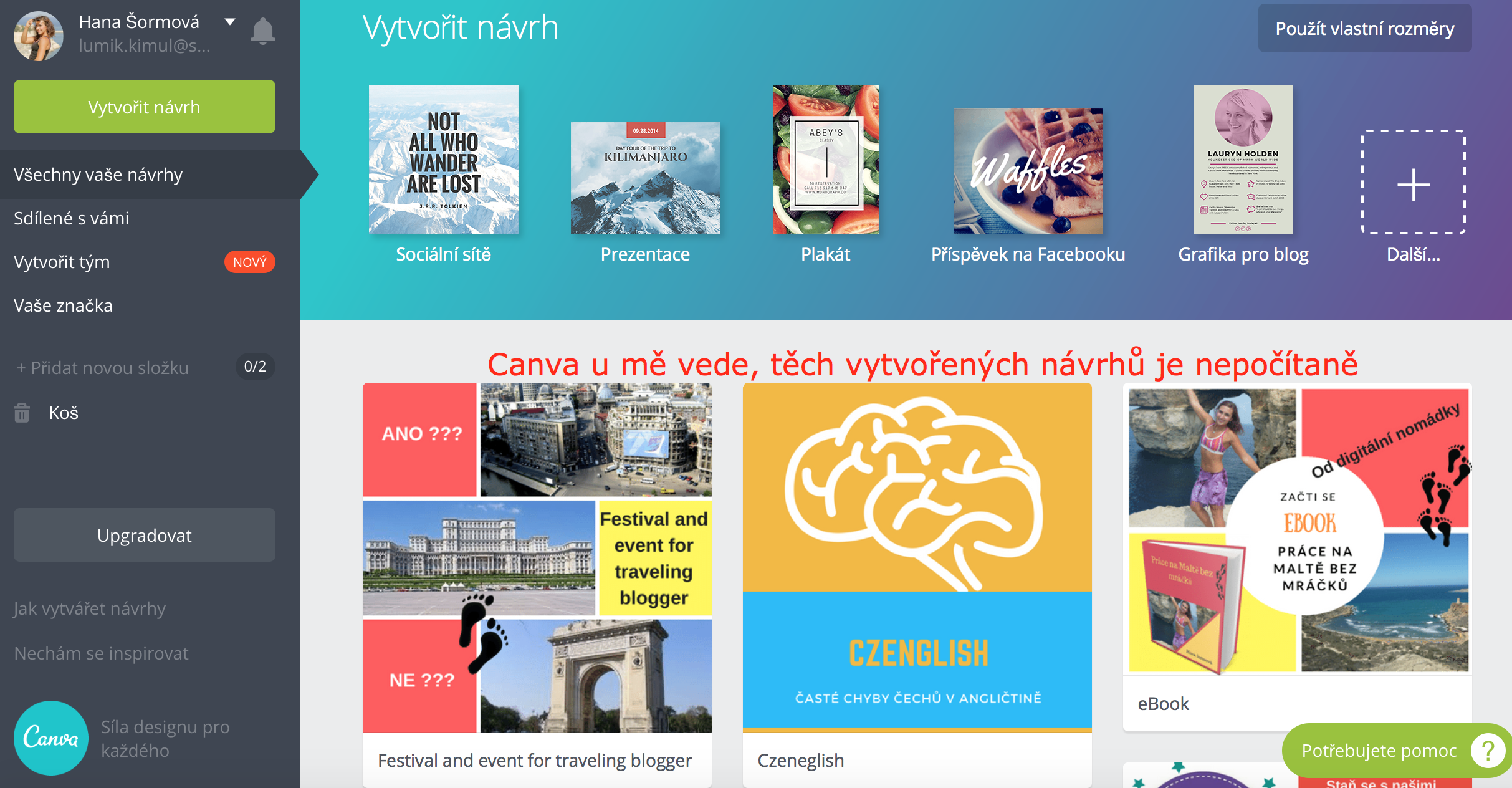 Nejradši ve článkcích využívám své fotky, ale když není zbytí, fotobanky to jistí, například ta na www.pexels.com. Za online nástroje na jednoduší grafiku musím vyzdvihnout free nástroj canva.com, kde si bezplatně navrhnu každý letáček i přebal na eBook. Pro tvorbu kolážových fotek sáhnu do www.pixlr.com. Kdyby došla kreativita, tak nepřeberné množství návrhů na www.pinterest.com ji zase oživí.